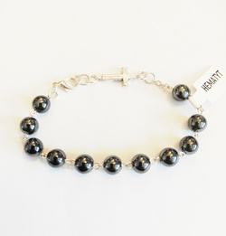 Bransoletka-różaniec z kamieni hematyt z krzyżykiem
